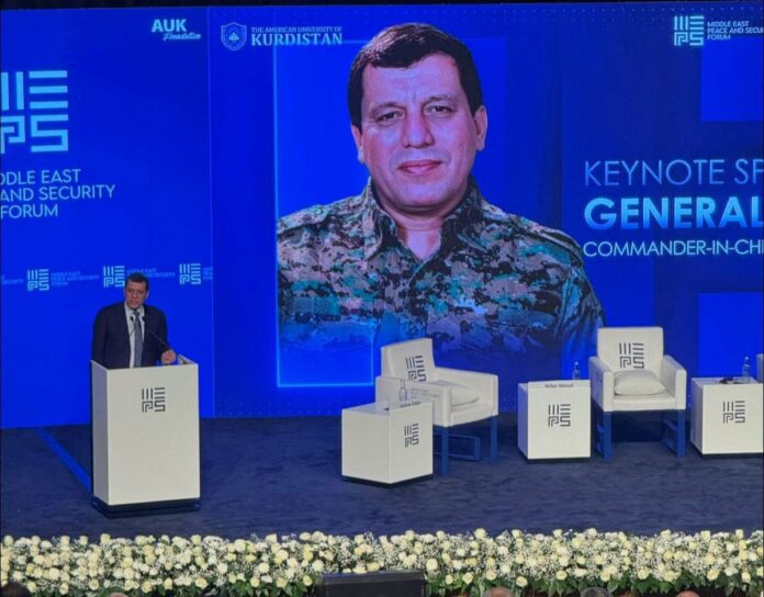 Le commandant en chef des Forces démocratiques syriennes (FDS), Mazloum Abdi a déclaré lors du forum que le « Moyen-Orient a désespérément besoin de paix et de stabilité ».