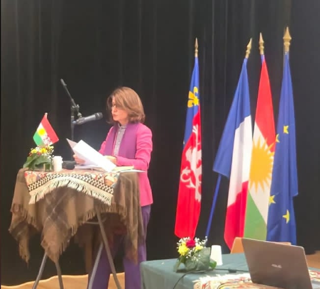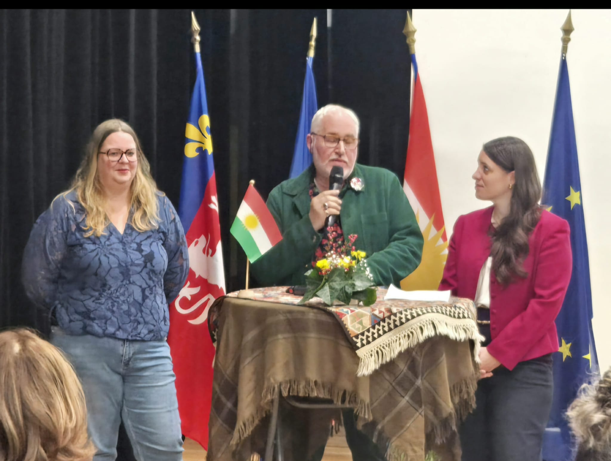 Fanny Dubot maire du 7eme, Thierry Lamberthod président de MKL, Sonia ZDOROVTZOFF, Relations, coopération et solidarité internationales Conseillère du 8e arrondissement, ont pris la parole en guise d’ouverture de la 3ᵉ Journée de la Culture Kurde.