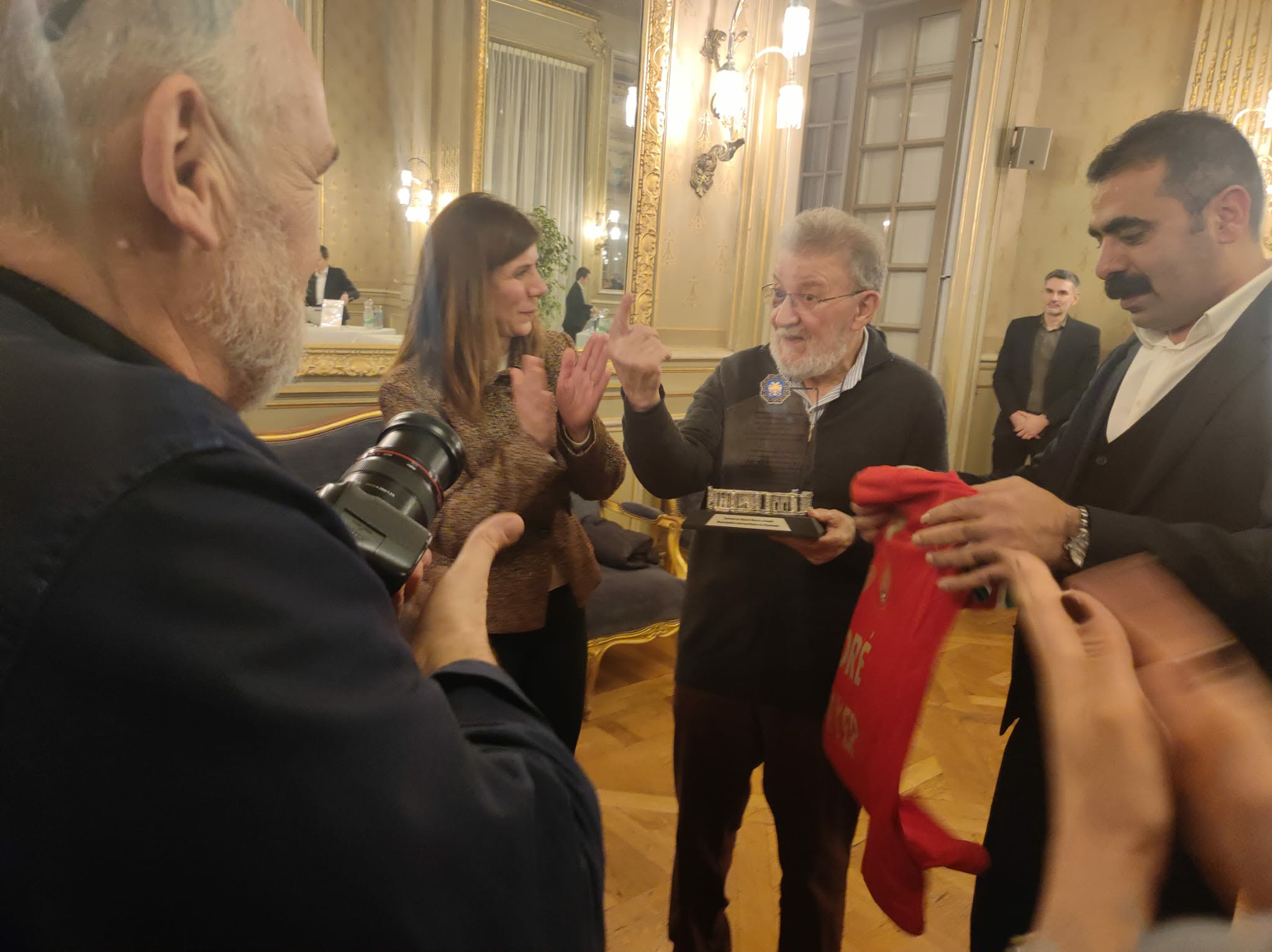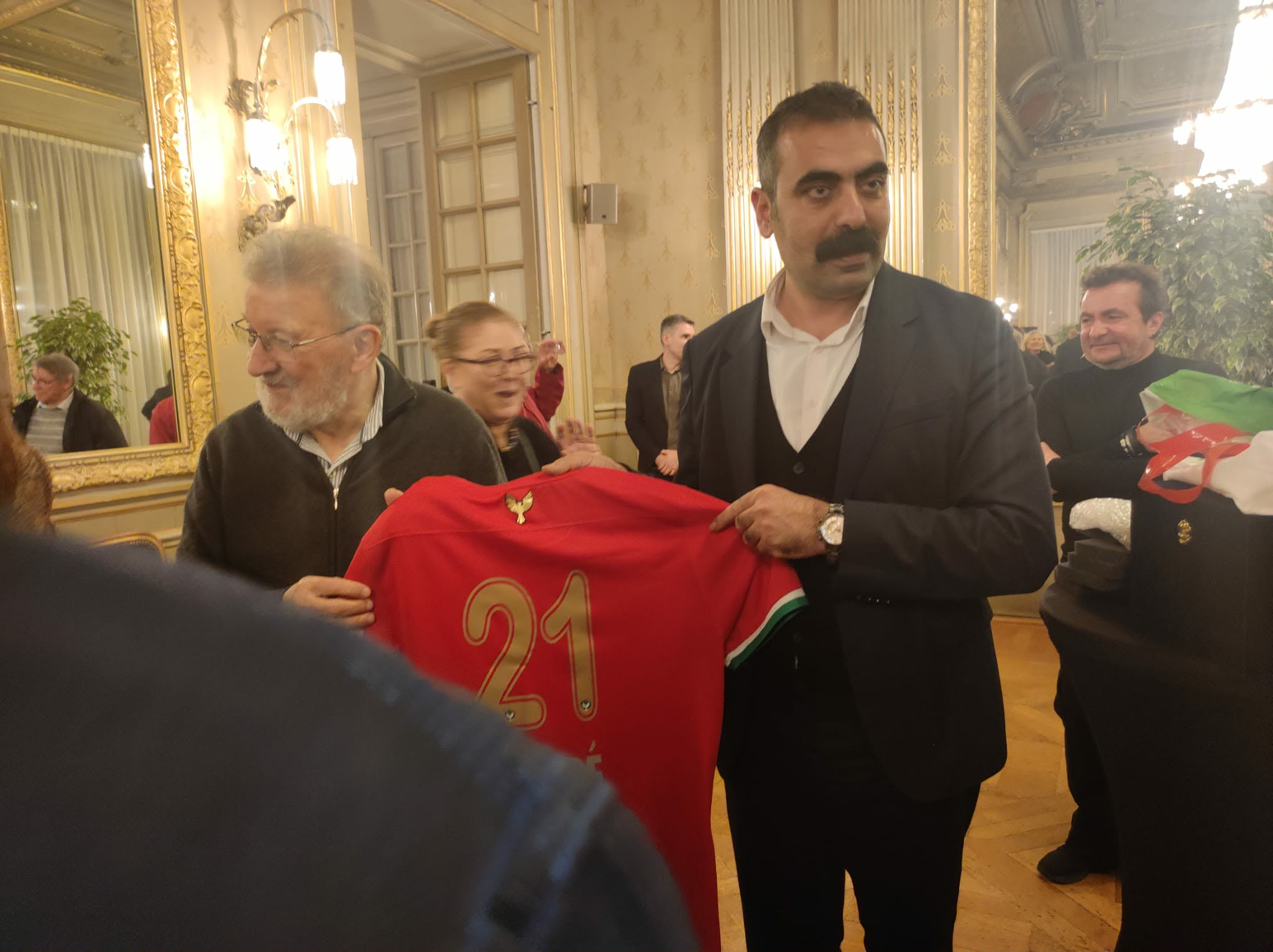 Les co-maires de Diyarbakir ont offert un maillot du club de foot Amedspor et un souvenir de leur ville à André Métayer, président fondateur de l’Association Amitiés Kurdes de Bretagne qui est aux côtés du peuple kurde depuis plus de 30 ans.