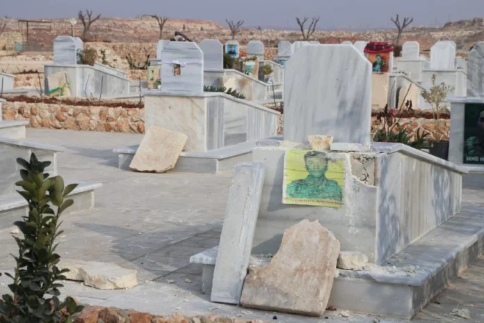 SYRIE / ROJAVA – Le régime syrien a lancé des roquettes contre les cimetières des martyrs kurdes, situé dans les quartiers de Sheikh Maqsoud et d’Achrafieh, causant des dégâts importants.