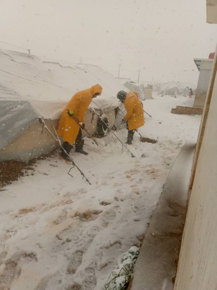 Les comités d’urgence s’emploient à dégager la neige accumulée sur les tentes et leurs toits afin d’éviter leur effondrement, tout en vérifiant les conditions de vie des familles déplacées et en recensant leurs besoins, dans le but de limiter l’aggravation de la crise humanitaire que pourrait engendrer cette vague de froid intense. (ANHA)