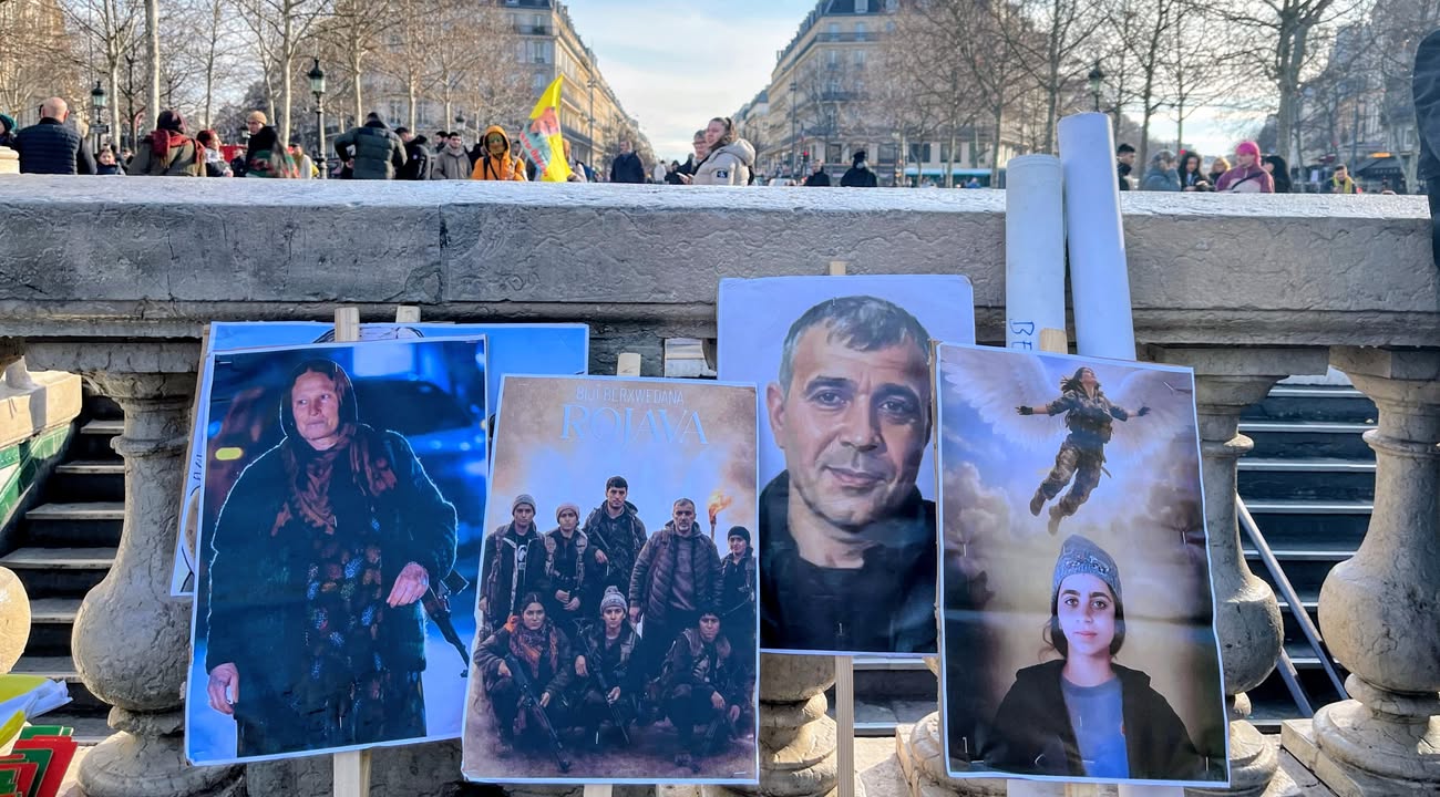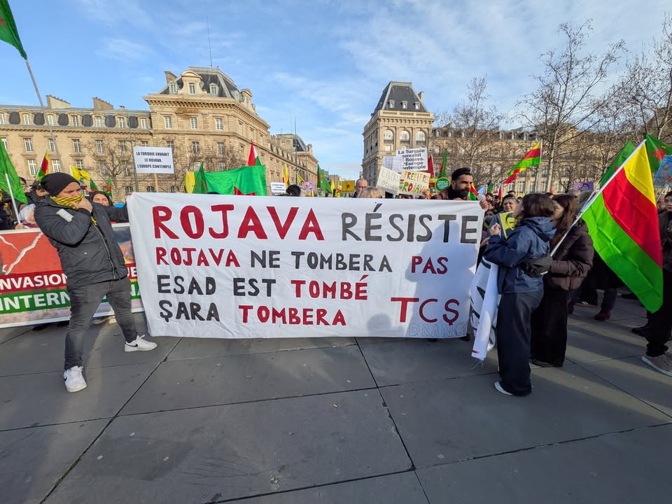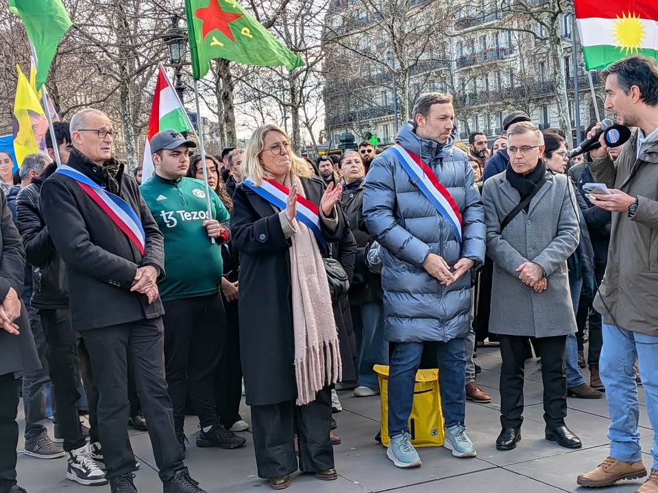 Le représentant du Rojava en France, Karim Kamar, les député·es Danielle Simonnet, Thomas Portes, un responsable du CDK-F et un membre de l’Association France-Kurdistan ont pris la parole pour dénoncer les attaques qui ciblent les Kurdes en Syrie, mais aussi au Rojhilat, en Iran.