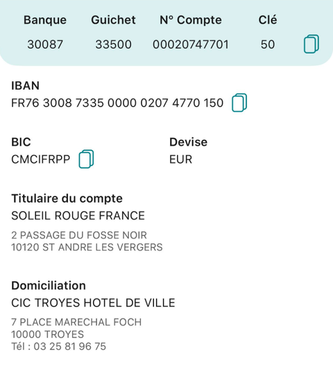 Voici les coordonnées bancaires du Soleil Rouge – Rojava Sor :