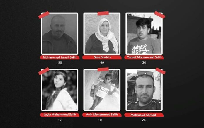 Les blessés ont été identifiés comme étant Ghazal Mohammed Salih, 16 ans ; Ibrahim Mohammed Salih ; et les enfants de Shirin et Mahmoud Salih : Shadi, 6 ans ; Ibrahim, 4 ans ; et Lavand, 2 ans.