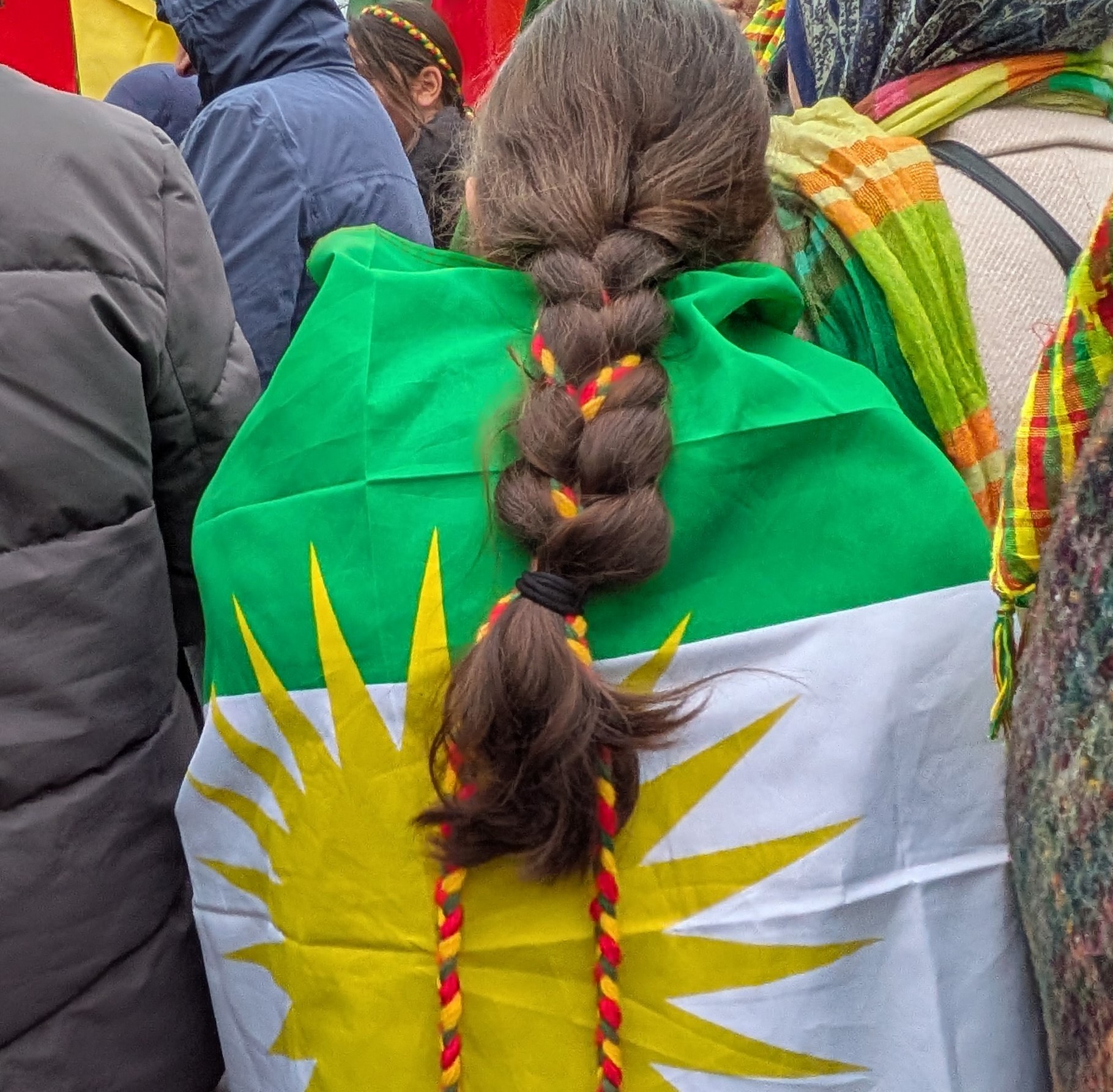 La foule a scandé des slogans en faveur de la défense du Rojava et de l’unité kurde, ainsi que le célèbre « Jin, jiyan, azadî » (femme, vie, liberté) saluant la place centrale des femmes dans la lutte du peuple kurde.