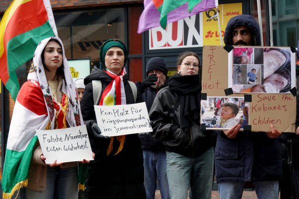Heike Sudmann, députée au Parlement de Hambourg et coprésidente du groupe parlementaire du Parti de gauche, a exprimé sa solidarité avec les militants kurdes et, lors d’un discours prononcé devant le bâtiment du SPIEGEL, a appelé à un traitement médiatique nuancé et fidèle à la réalité. « Il est important que les médias allemands examinent de plus près ce qui se passe réellement sur place. Si l’on prétend soudainement qu’il ne s’agit que d’une autonomie kurde et que les Arabes sont opprimés, c’est faux. Nous ne pouvons que réaffirmer qu’il s’agit d’une autonomie des groupes ethniques qui y sont représentés, d’une autonomie des populations qui y vivent, ce qui signifie aussi qu’elles prennent leur destin en main et décident de leur propre avenir. Cela signifie ne pas se laisser dépendre d’un charia qui se prend soudainement pour un grand diplomate et un chef d’État autoproclamé », a déclaré la députée, faisant référence à la lutte des Kurdes contre Daech et d’autres groupes islamistes depuis 2014.