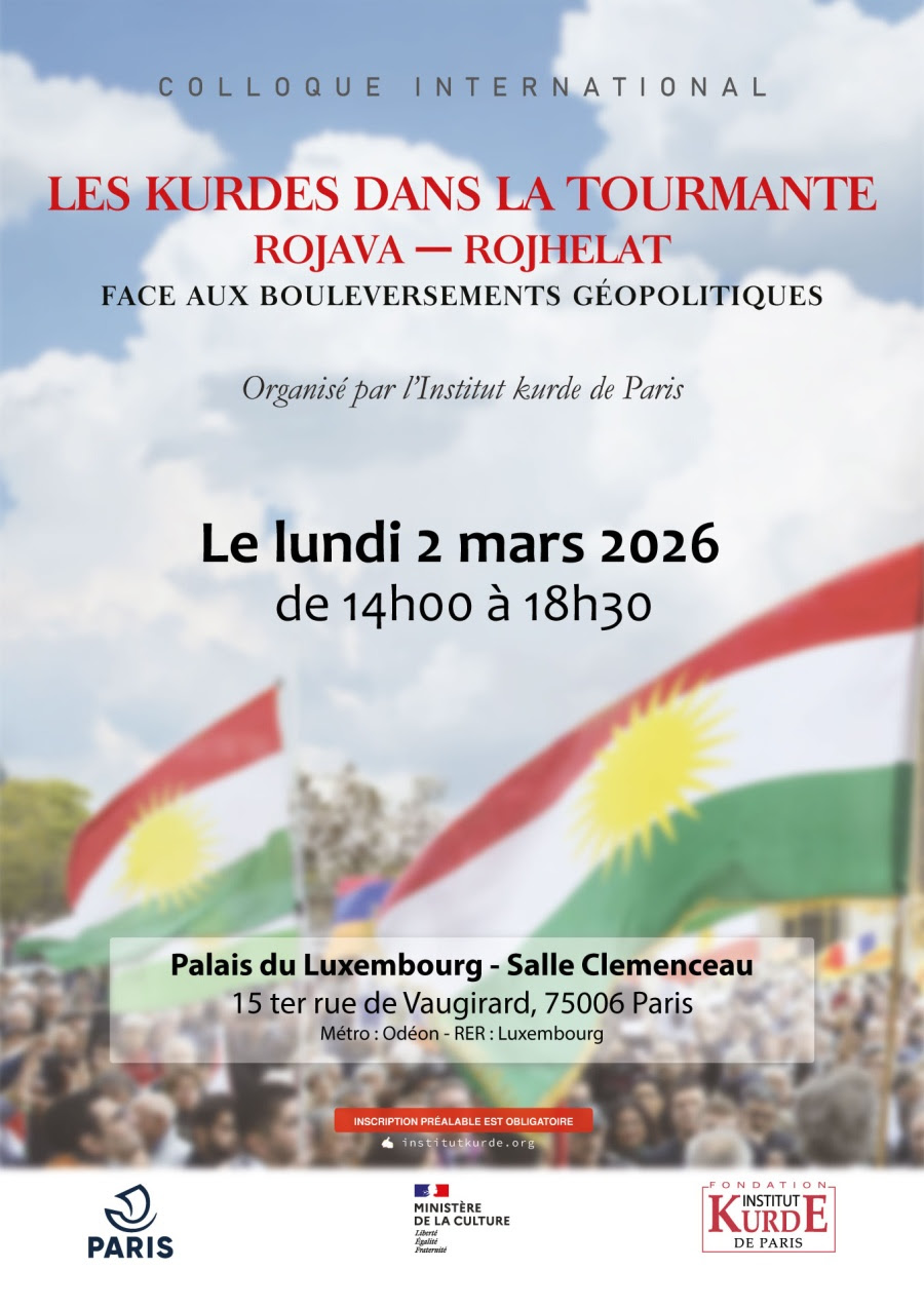 PARIS – Le 2 mars 2026, l’Institut kurde de Paris organise un colloque international sur la situation politique au Rojava, dans le Nord de la Syrie, et au Rojhilat, Kurdistan sous l’occupation iranienne.