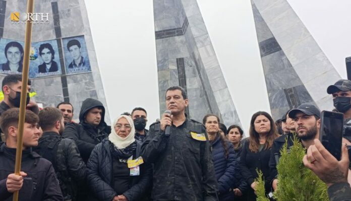 Abdi a tenu ces propos lors des funérailles de dix combattants des FDS qui se sont déroulées au cimetière des martyrs de la ville kurde de Kobanê, dans le nord de la Syrie.