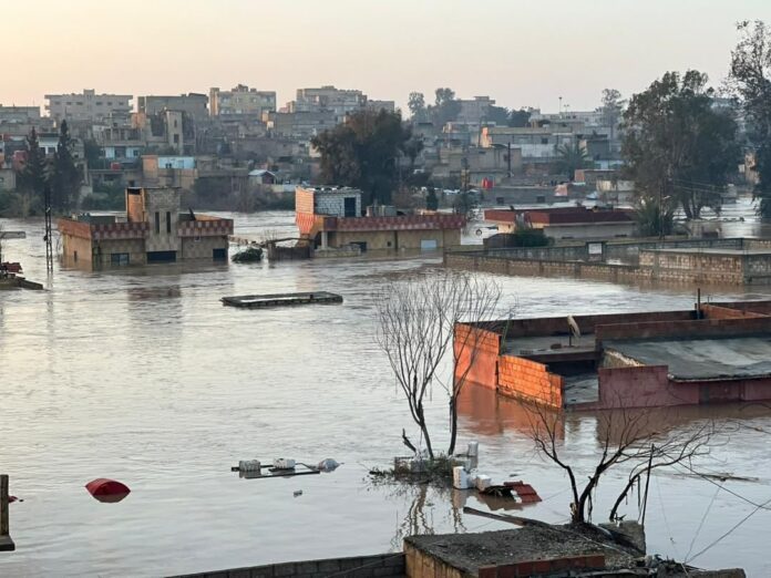 SYRIE / ROJAVA – Dans le nord-est de la Syrie (Rojava), de violentes pluies torrentielles ont provoqué de graves inondations ces derniers jours, aggravées par la crue des rivières Zirkan (Zarkan) et Khabour. Selon les autorités locales kurdes, plus de 200 habitations ont été endommagées ou inondées dans la ville d’Hassaké et ses quartiers périphériques, ainsi que dans les localités de Zirkan et Tell Tamer.