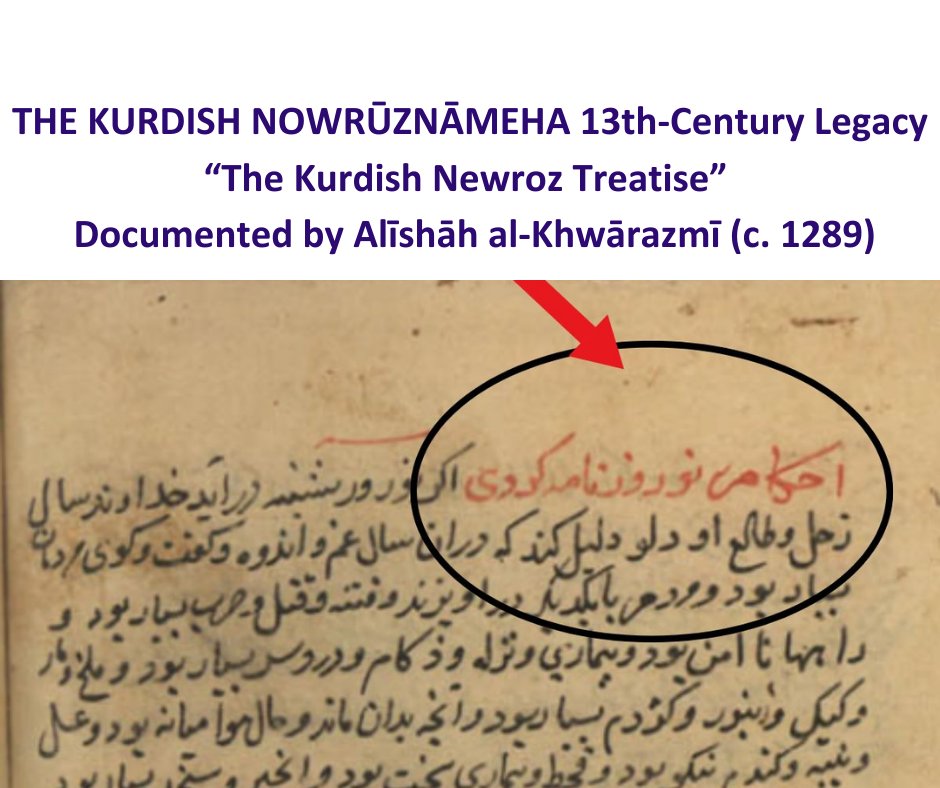 Ce témoignage précieux provient d’un traité d’astrologie du XIIIe siècle intitulé ʾAshǧār va ʾathmār (« Arbres et fruits »), attribué au savant Alīshāh al-Khwārazmī. Ce dernier a préservé un extrait d’un ouvrage aujourd’hui perdu : l’Ahkām-e Nowrūznāmeh-ye Kurdī, que l’on peut traduire par « Les règles (ou présages) du Livre de Newroz kurde ».