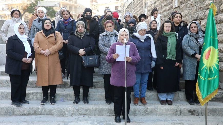 La déclaration a été lue par Hevin Musa, membre du bureau, dans le quartier d’Achrafieh à Alep, en présence de dizaines de membres de Kongra Star et de représentantes de divers mouvements féministes.